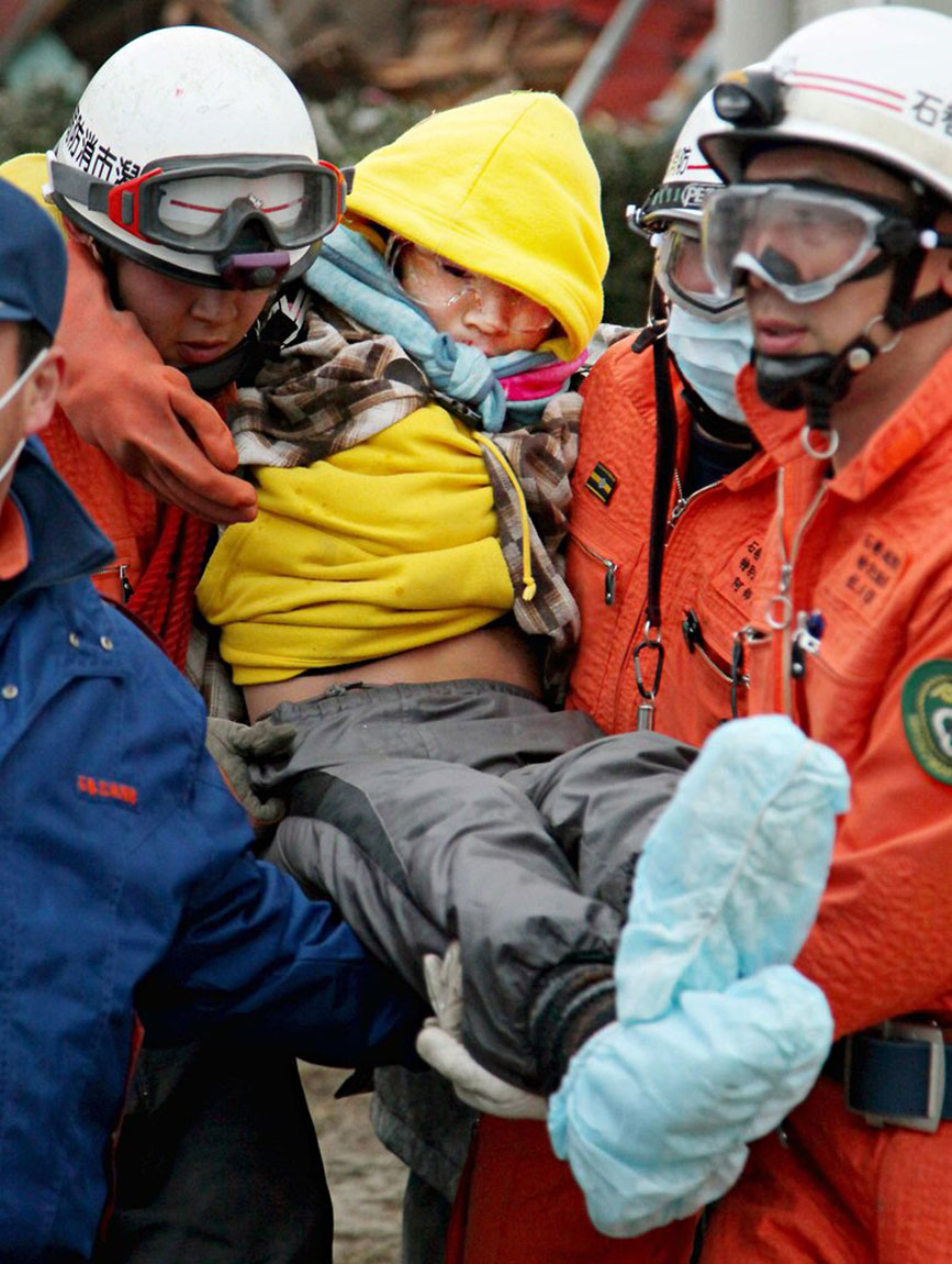 Como la policía no podía sacar a Sumi, tuvieron que llamar a un equipo de rescate para salvarla. Ambos fueron trasladados en helicóptero al hospital de Ishinomaki, donde pudieron contar que sobrevivieron al peor Tsunami de la historia reciente de Japón, que provocó una ola de diez metros borrando del mapa cientos de pueblos.