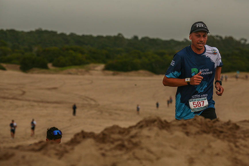 A unos cuatro kilómetros de la partida y en dirección al mar, comenzaron los grandes arenales, un espectáculo visual inigualable. Los corredores iban por los filos de los médanos que lentamente el sendero los dejaba a la vera del mar. Con casi 7 km recorridos, la distancia de 10 k al llegar a un puesto de abastecimiento en la playa volvía por la costa hasta la llegada.